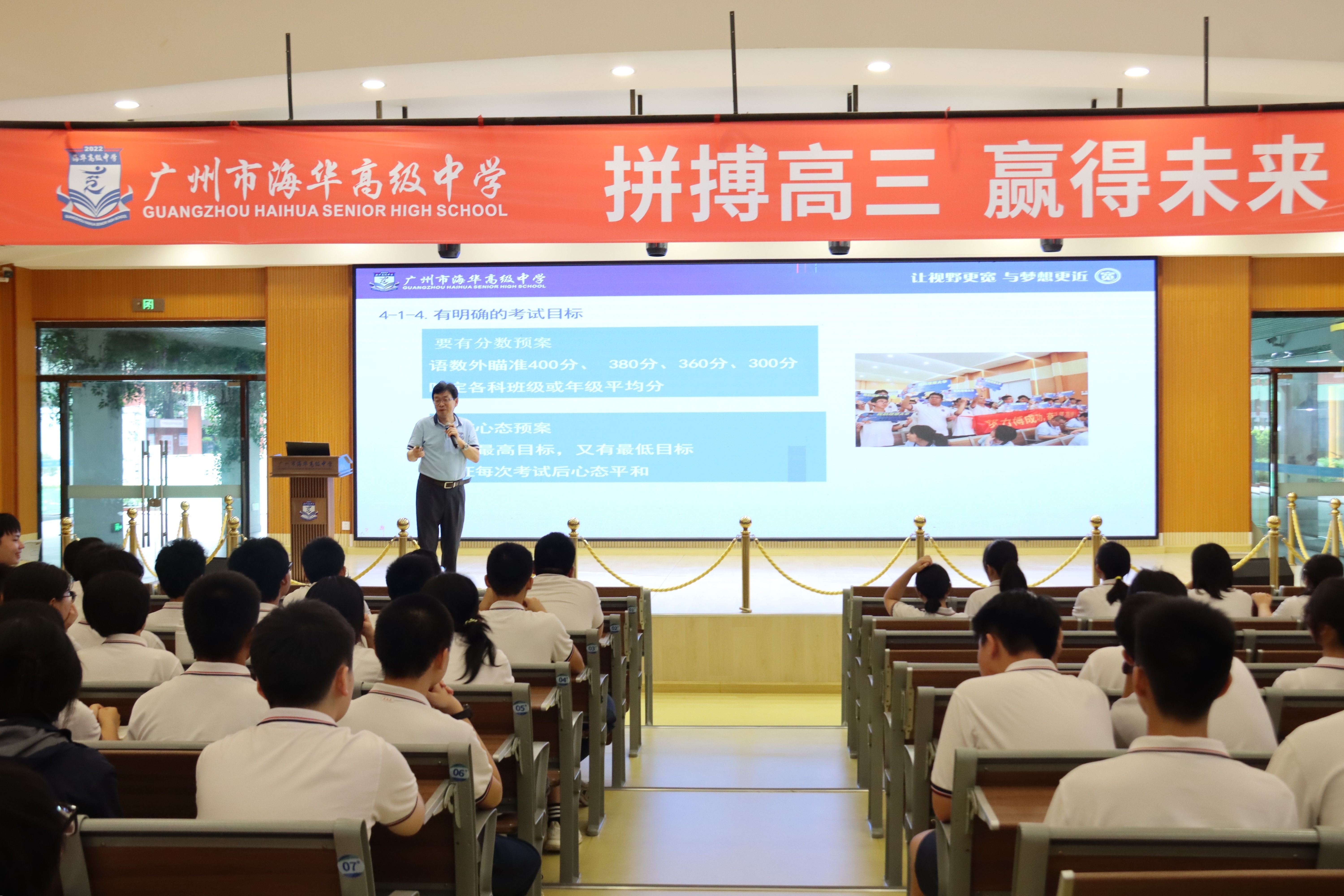 “海华第一届高三毕业生是2022年中考第五批招生进校的学生,最低分数线545分,海华学生的均分596分。与本区同类民办学校对比都要低40分以上。700分以上只有3人。600分以上不足100人。在经过广州市高三毕业班第一次综合测试后,我们运用广州市高考常模数据统计分析,海华到达特控线预测人数的比例超过集团期望目标300%左右。参考海珠区2025届高三综合测试质量分析数据,海华的高三目标达成度均在海珠区各高中的前列。”作为一位到任仅3个月的学术校长,一系列精准的数据,廖志文娓娓道来,如数家珍,难掩其严谨治学之底蕴。